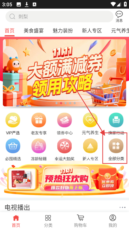 1、在软件首页,点击【全部分类】,可进入分类页面,浏览各类商品分类啦。