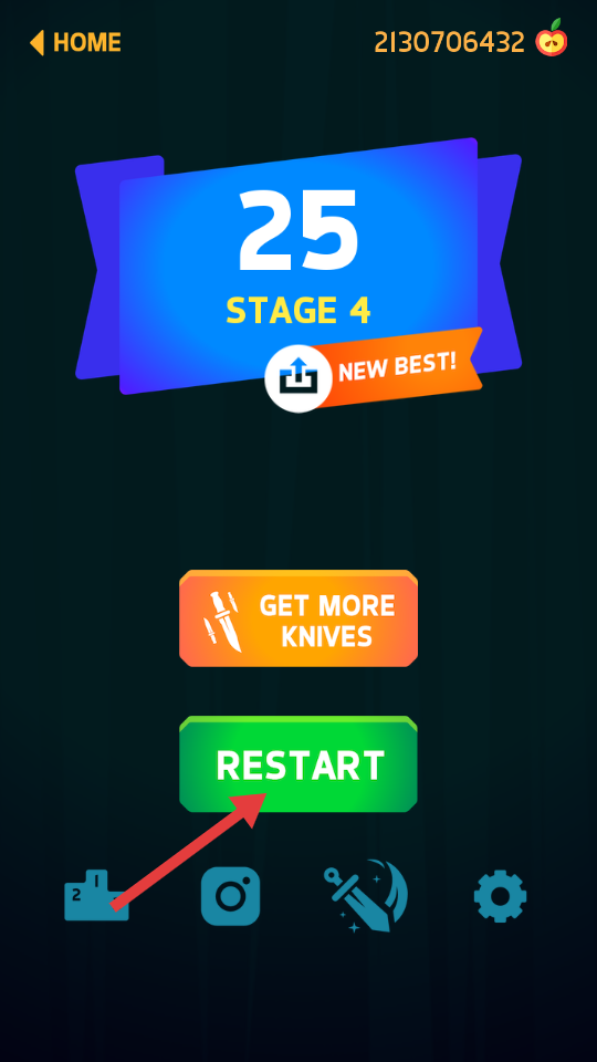 4、若想继续挑战,点击【RESTART】重新开始,争取突破新的关卡记录。