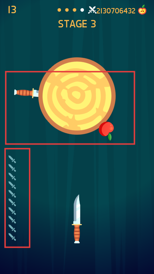 3、注意圆盘上的苹果和已插的刀,合理利用剩余的刀,继续挑战以提升分数。