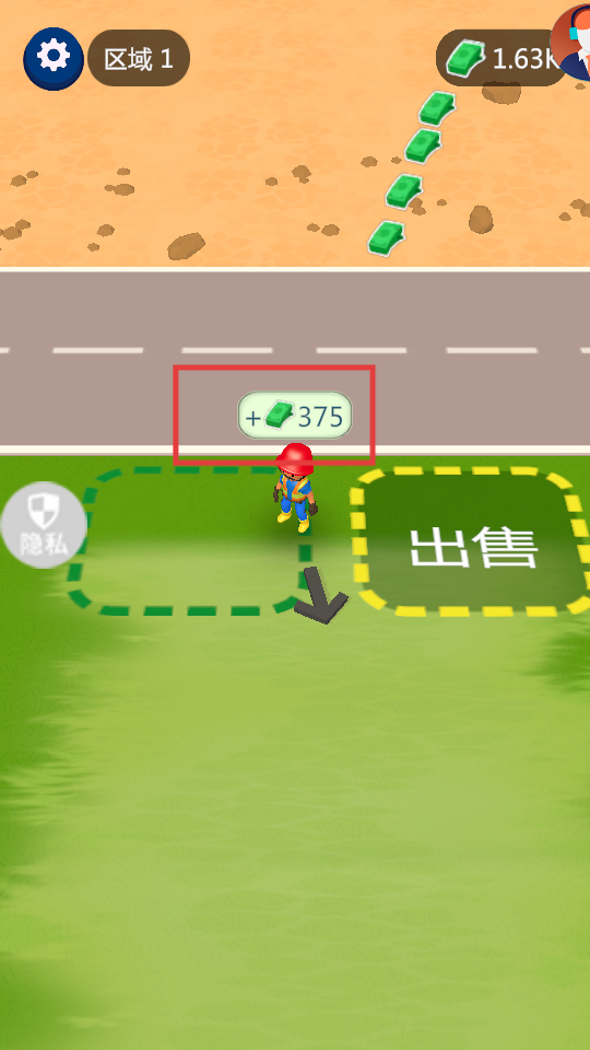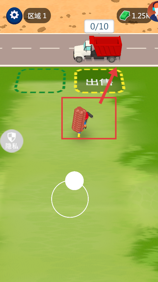 3、将挖掘到的资源运到出售区域,卖给卡车,积累资金。