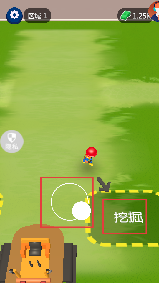 1、点击挖掘区域,操控角色开始挖掘,获取地下资源。