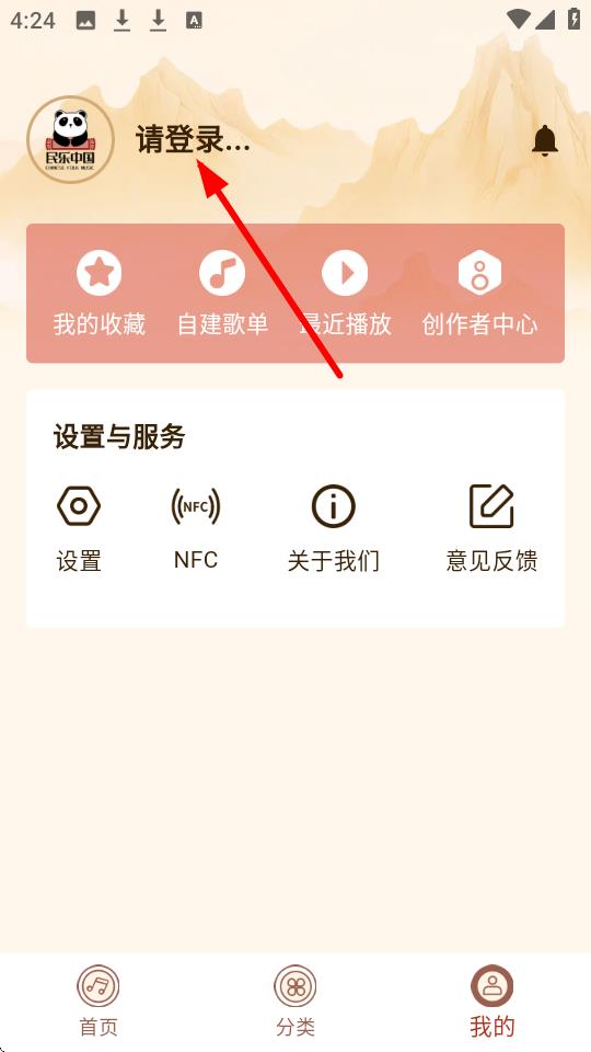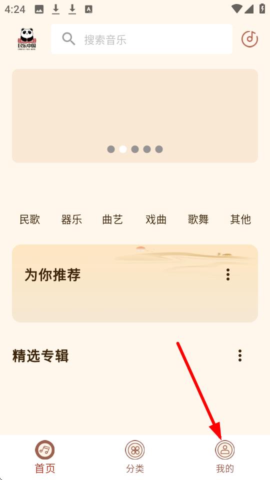 1、在【民乐中国】首页,点击右下角【我的】,可进入个人中心页面。