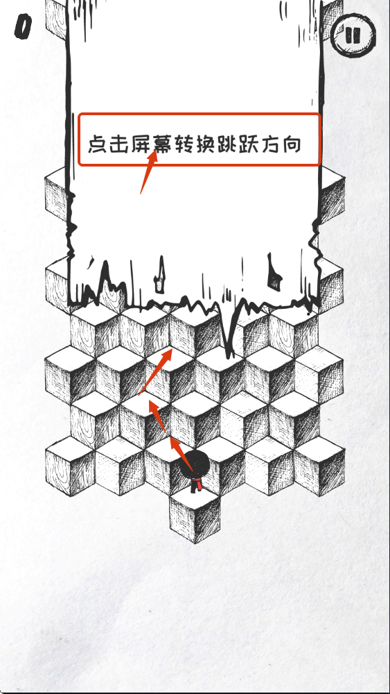 2、游戏中通过点击屏幕转换跳跃方向,控制角色在阶梯结构上移动,需精准操作避免角色掉落。