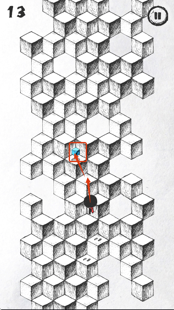 3、在游戏过程中,收集场景中的蓝色方块等道具,积累分数,挑战“阶梯英雄”类的关卡纪录。