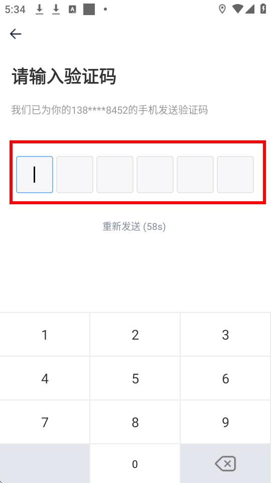 4、在【请输入验证码】界面,输入发送到手机的验证码。
