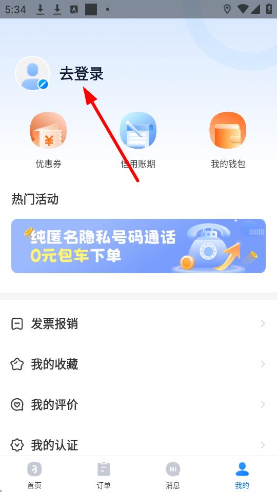 2、在人人巴士【我的】页面,点击【去登录】可进入登录流程。