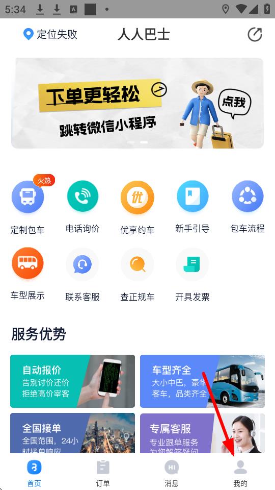 1、在人人巴士首页,点击底部【我的】可进入个人中心。