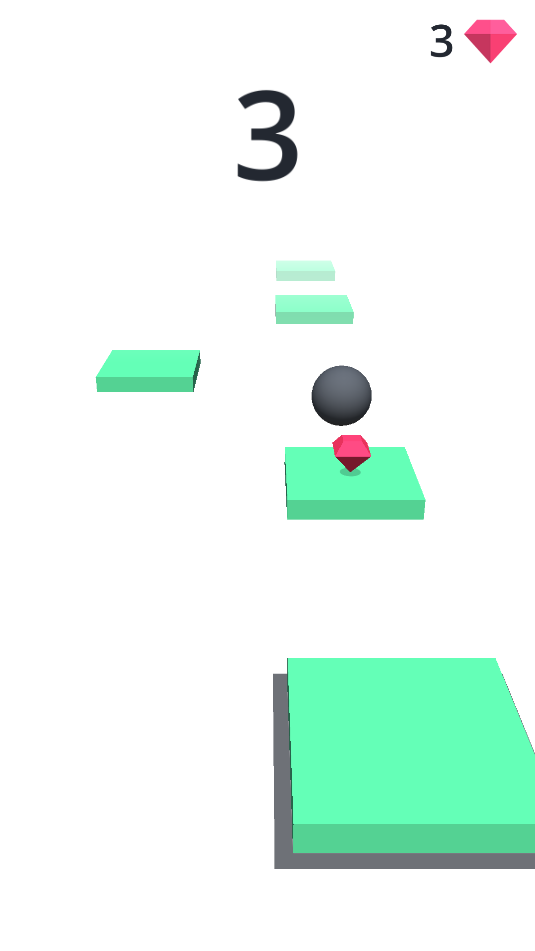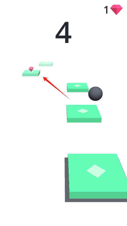 2、小球每跳跃过一个方块增加一个数量,需收集途中的宝石。