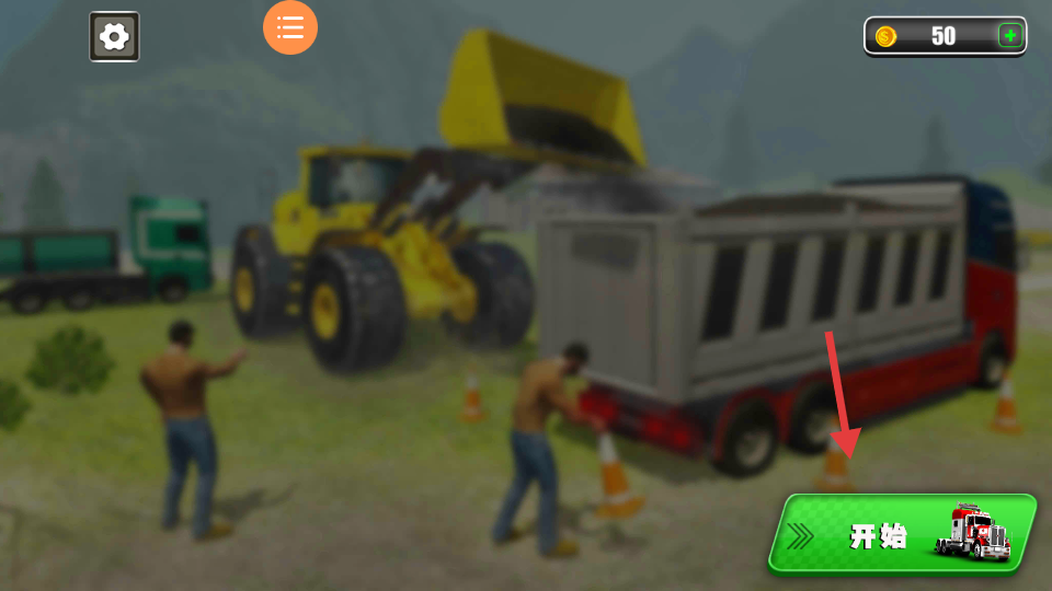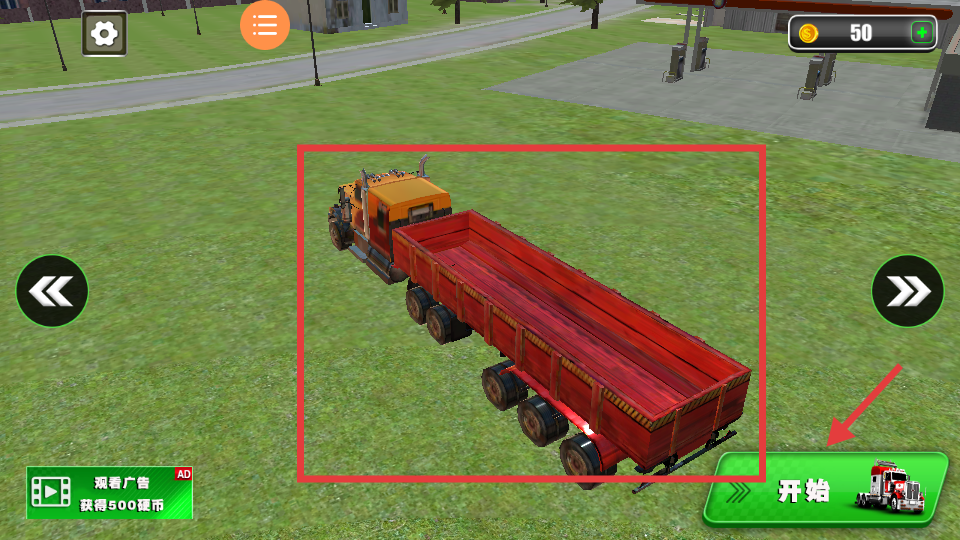 2、选择红色卡车,再次点击绿色【开始】按钮,进入卡车驾驶场景。
