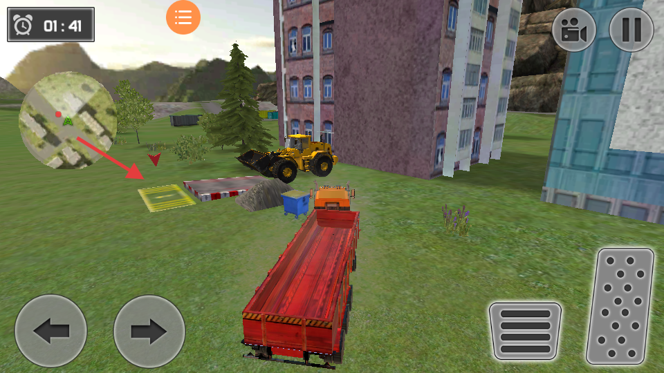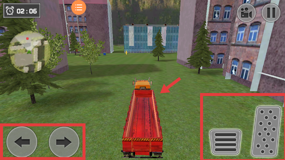 3、用左侧【←】【→】按钮控制卡车转向,右侧按钮调节车速,操控卡车在场景中移动。