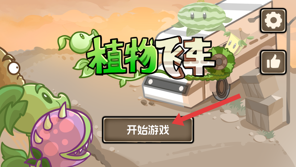 1、点击【开始游戏】按钮,进入游戏场景,驾驶植物战车开始冒险。
