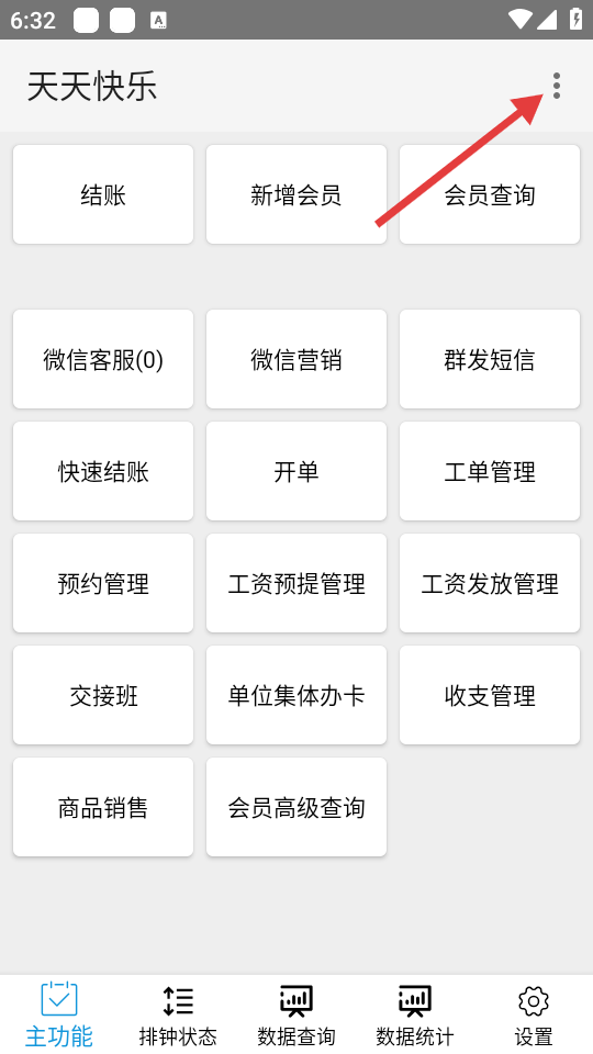 2、在主功能界面,点击右上角三点图标,可展开功能菜单。