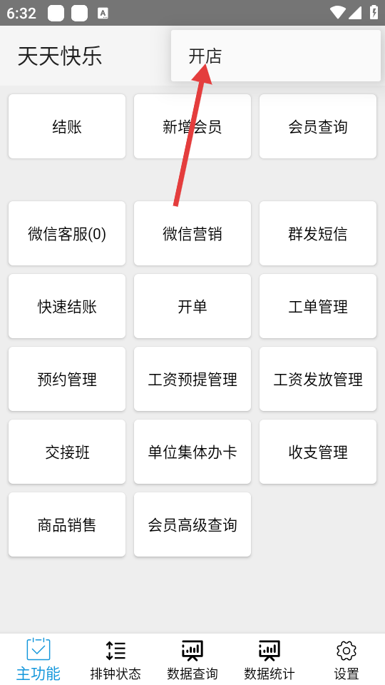 3、在功能菜单中,点击【开店】选项,可进入开店信息填写页面。