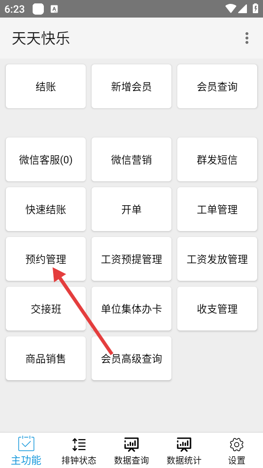 2、在主功能界面,点击【预约管理】选项,可进入预约功能页面。
