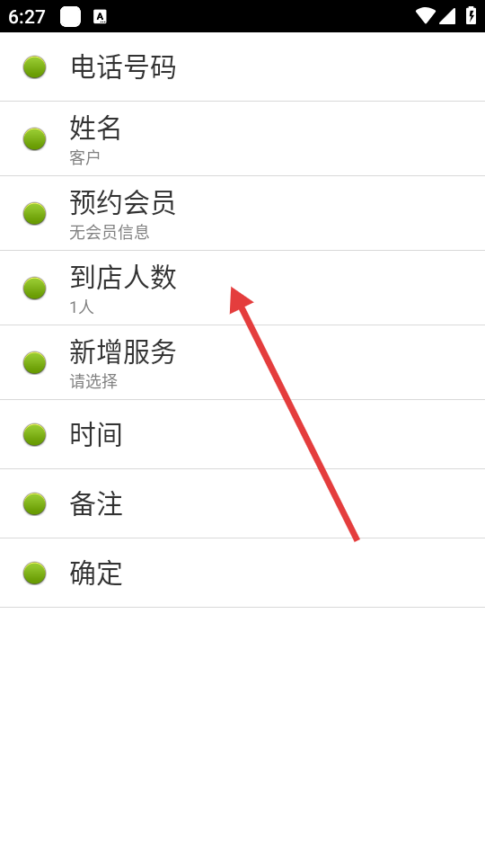 4、在预约信息填写页面,依次填写电话号码、姓名、到店人数等信息,完成后点击【确定】即可创建新预约。