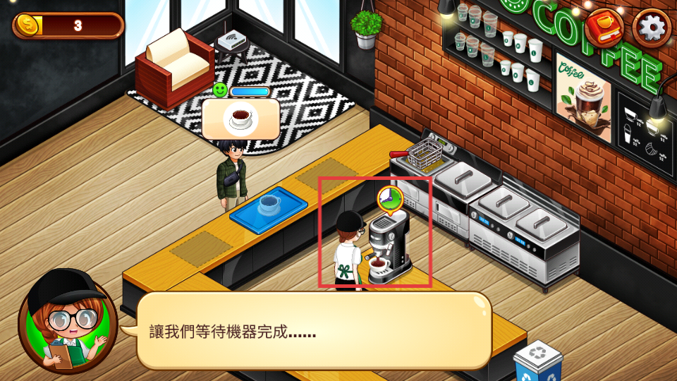 4、触摸托盘收集硬币,积累资金用于咖啡店的升级和运营。