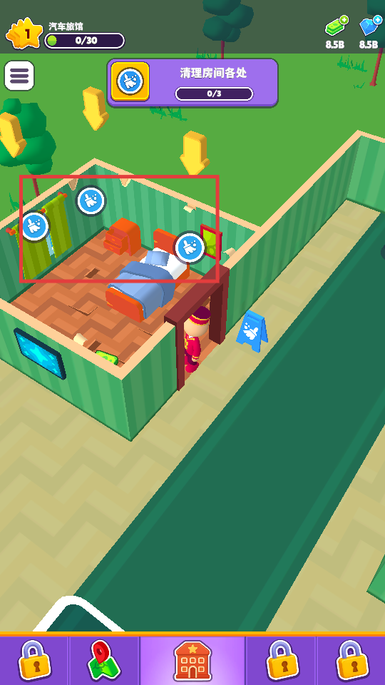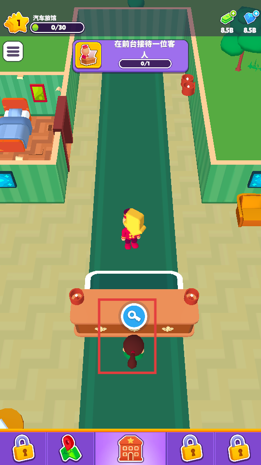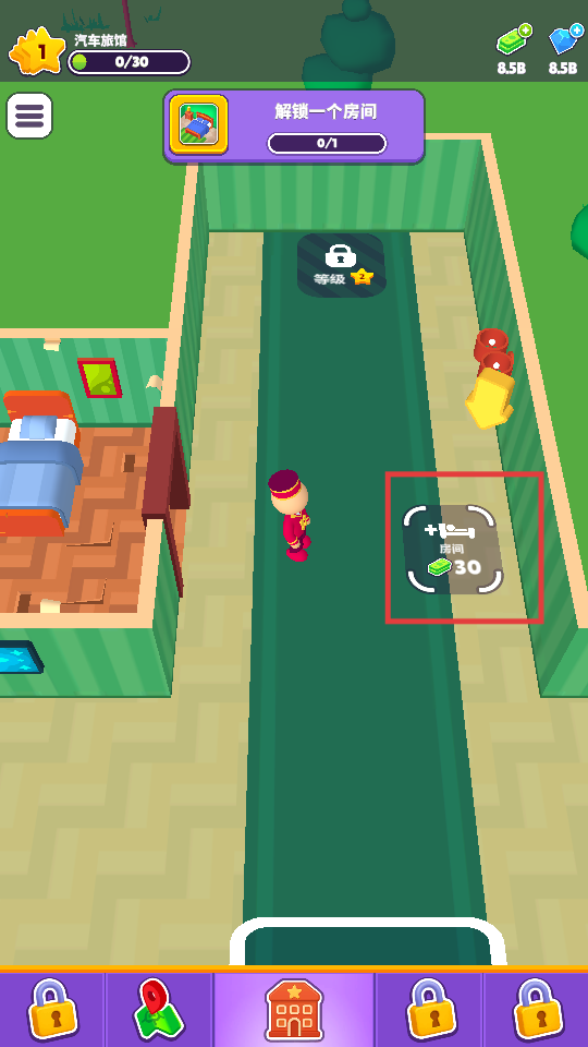 4、花费30资源解锁一个房间,扩大旅馆规模,增加接待客人的能力。