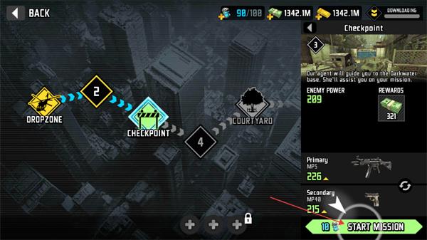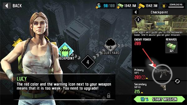 3、升级武器后,点击“STARTMISSION”进入“Checkpoint”任务,与Lucy汇合并推进关卡。