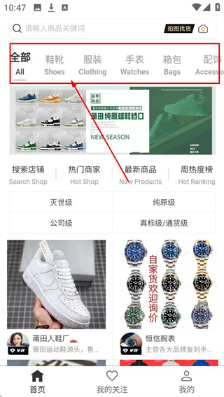 1、在首页选择商品分类,比如【鞋靴-Shoes】,就能查看对应分类的商品啦。
