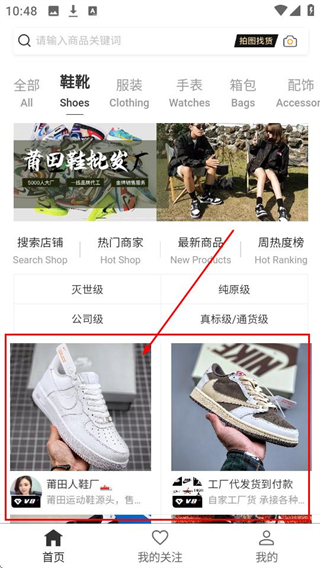 2、在鞋靴分类中找到喜欢的商品,比如莆田人鞋厂的鞋子,点击进入店铺详情页哦。