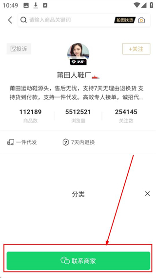 3、在店铺详情页点击【联系商家】,就能进入沟通界面,咨询商品信息啦。