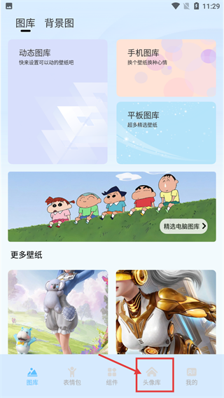 1、在壁纸APP首页,点击底部【头像库】选项,进入头像库板块。