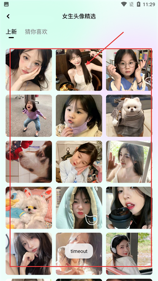 3、在【女生精选】分类下,选择心仪的头像,点击进入其详情页。