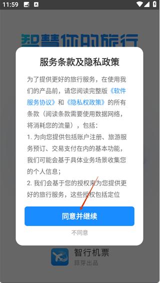 1、使用前需阅读【服务协议】与【隐私政策】,点击【同意并继续】按钮以进入软件。