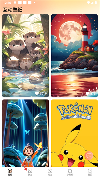 1、在壁纸APP首页,点击底部【静态】选项,进入静态壁纸板块。