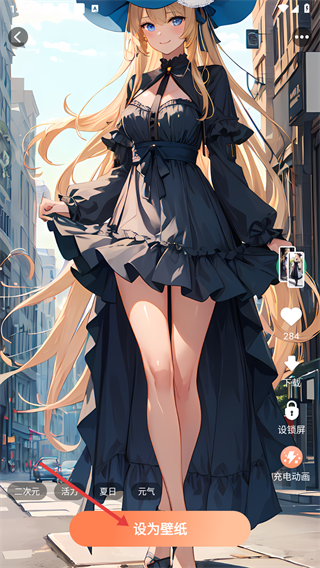 3、在【动漫】分类下,选择心仪的壁纸(如黑裙动漫少女款),点击进入其详情页。