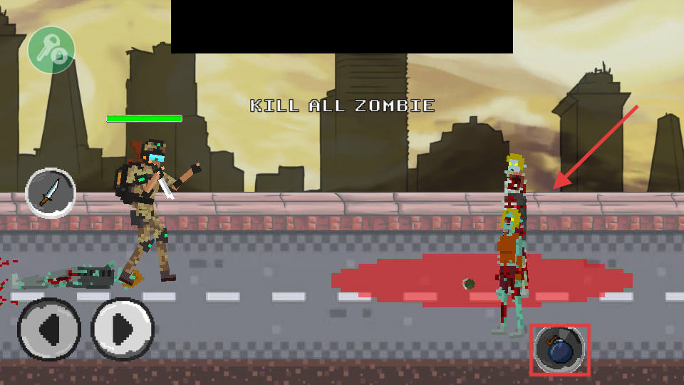 3、近距离僵尸用小刀攻击,数量较多时点击手雷按钮释放,快速清理大部分敌人。