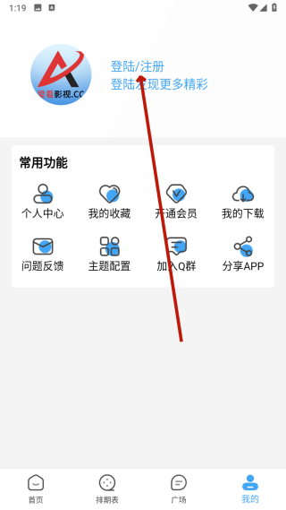 2、在个人中心页面,点击【登陆/注册】,进入登录页面。