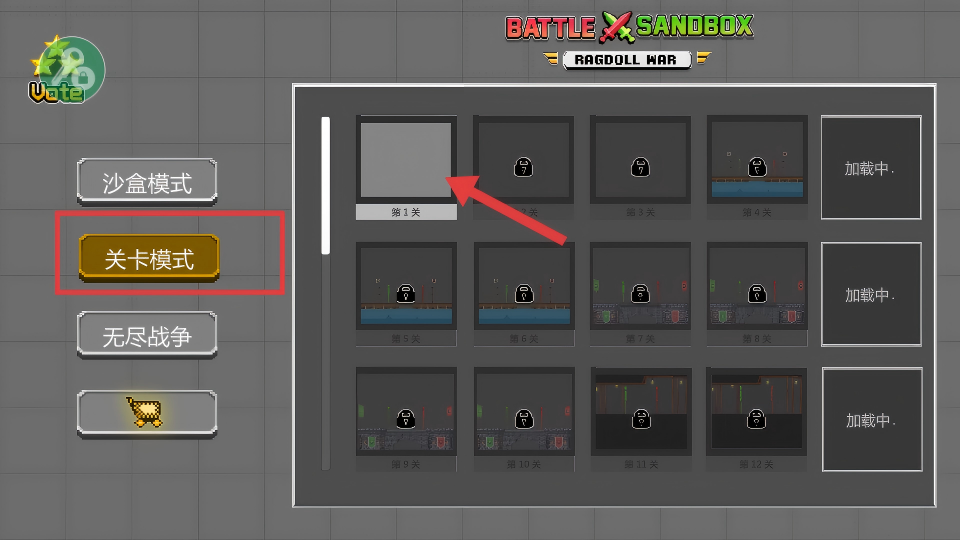 1、选择【关卡模式】,进入关卡挑战,开启战斗之旅,逐步解锁新关卡。