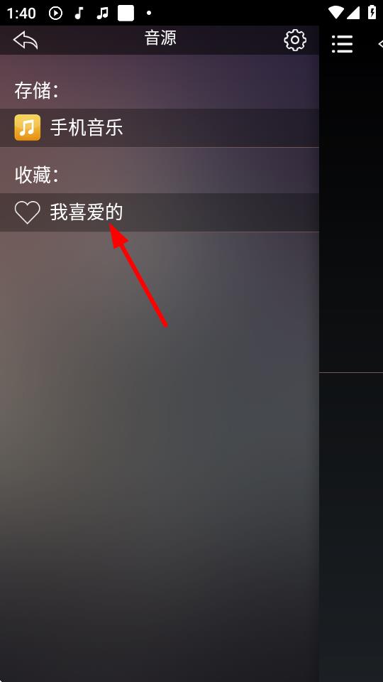 3、在【音源】界面,点击【我喜爱的】,可查看收藏的喜爱音乐。