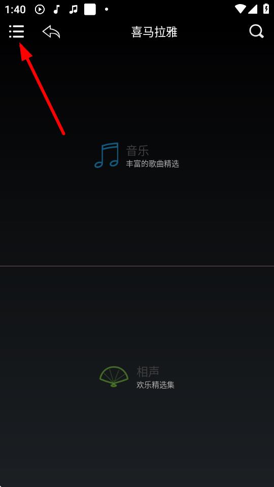 2、在【喜马拉雅】界面,点击左上角【三】图标,可展开功能菜单。