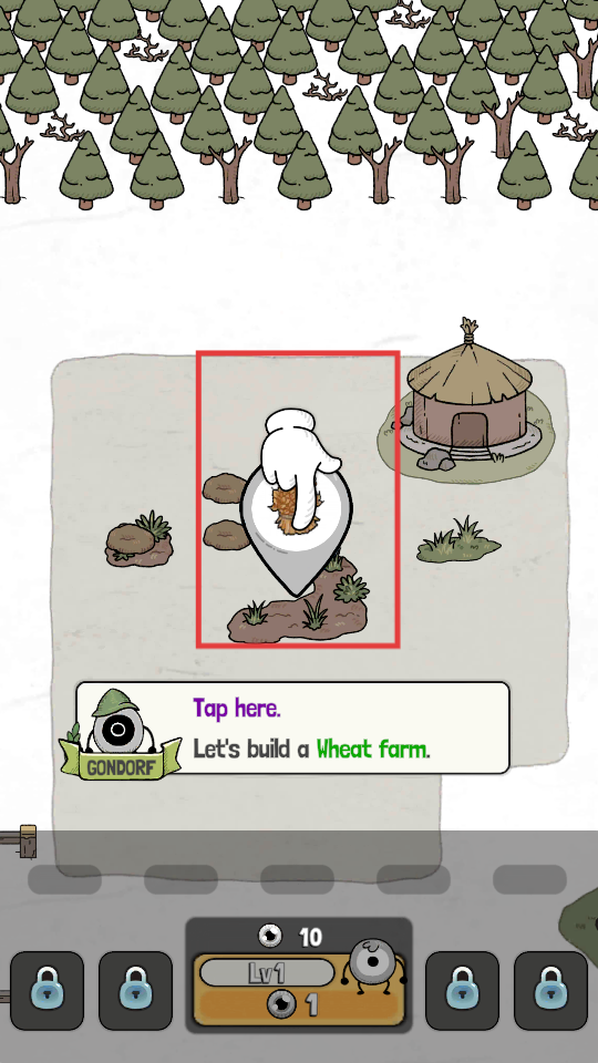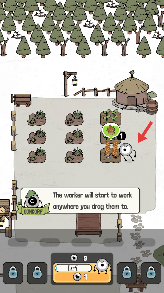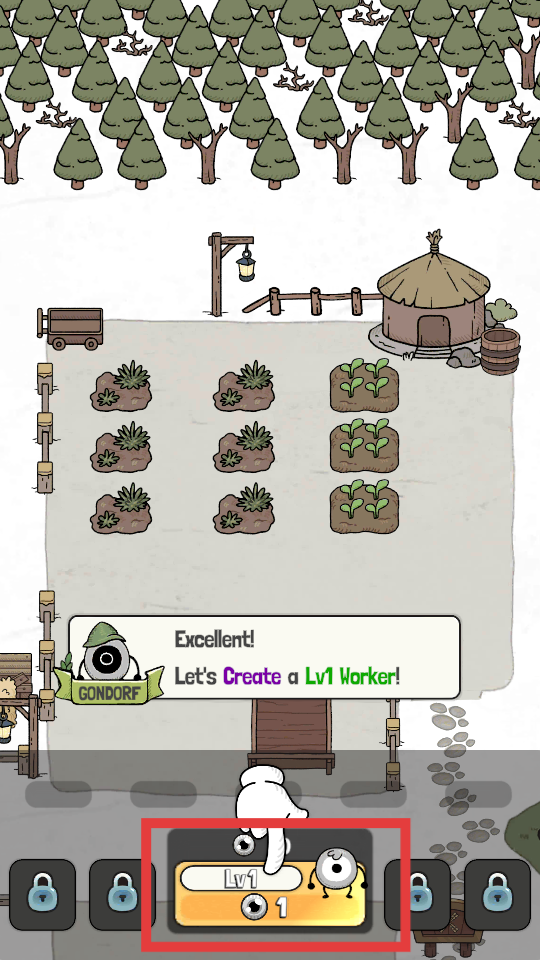 3、农场建成后,点击下方“Lv1”相关区域,创建1级工人。
