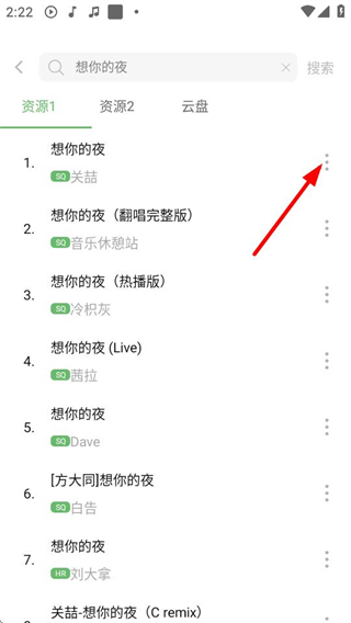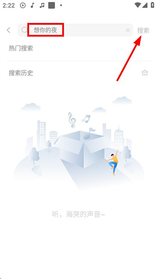 2、在搜索框输入【想你的夜】后,点击【搜索】按钮,可查找相关歌曲。