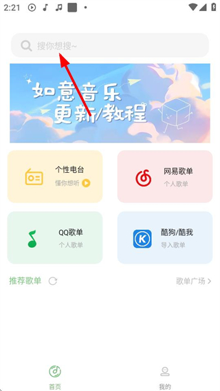 1、点击【搜你想搜~】的搜索框,可进入搜索页面。