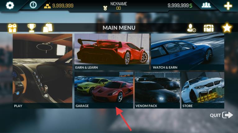 1、点击【GARAGE(车库)】,进入车辆购买页面。