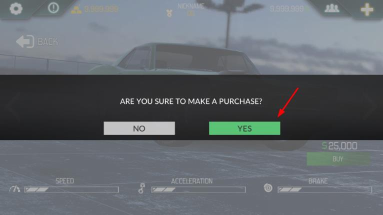 3、在弹出的确认购买提示框中,点击【YES】,完成车辆购买操作。