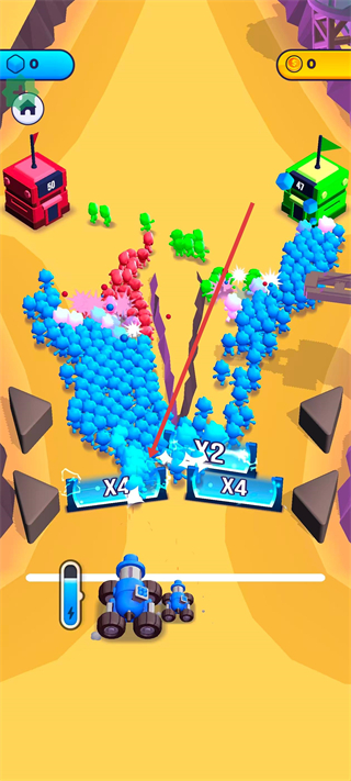 1、核心机制带来解压爽感,瞄准倍增门发射人群后,能直观看到队伍规模快速扩大,人群冲锋占领基地的过程极具视觉冲击力。