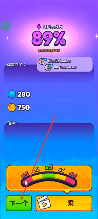 4、完成关卡,点击【下一个】按钮,继续挑战。