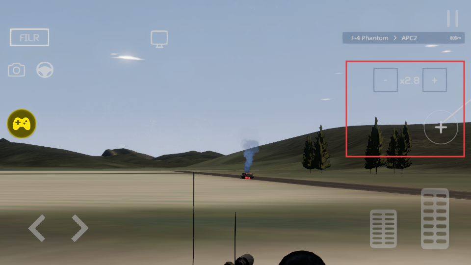 3、通过左侧方向按钮控制车辆移动,右侧按钮控制车速,调整防空车辆的位置,以便更好地瞄准敌人。