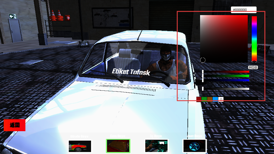 2、在车辆自定义界面,可通过RGB调色板调整车辆颜色,打造个性化车辆。