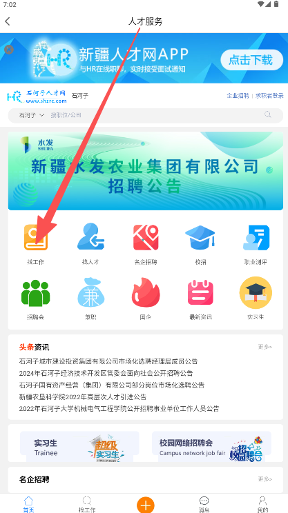 2、在首页找到并点击“人才服务”,进入“找工作”服务主页面。