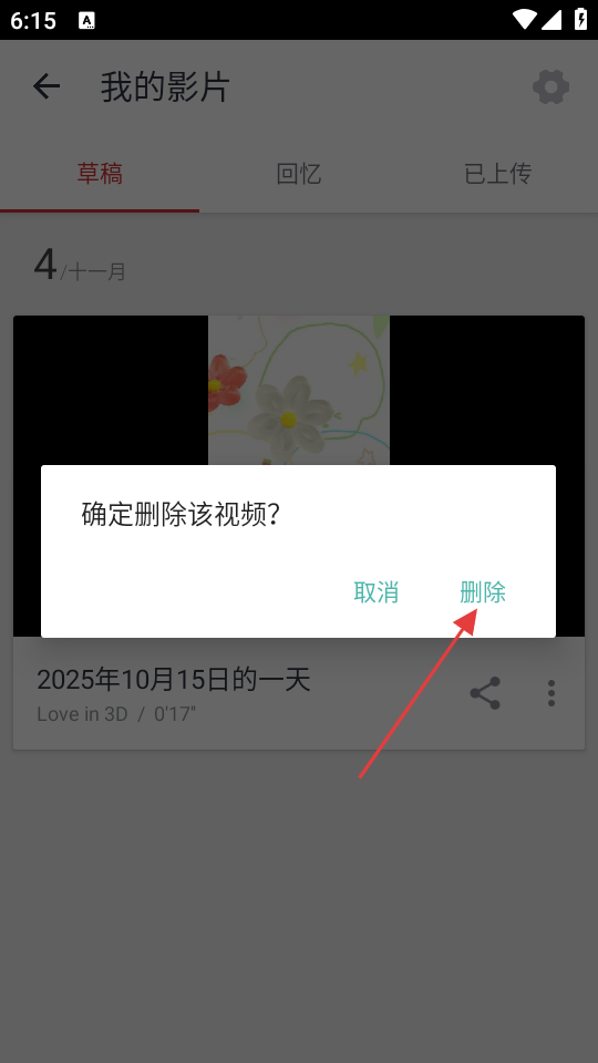 4、在确认框中,点击【删除】按钮,可删除该视频。