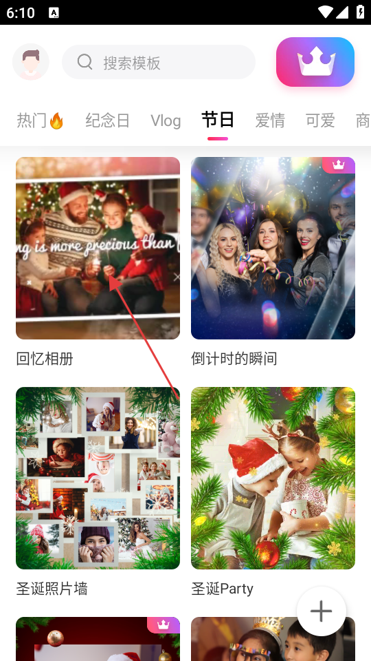 2、在节日页面,选择心仪的模板如“回忆相册”,可进入该模板的制作界面。