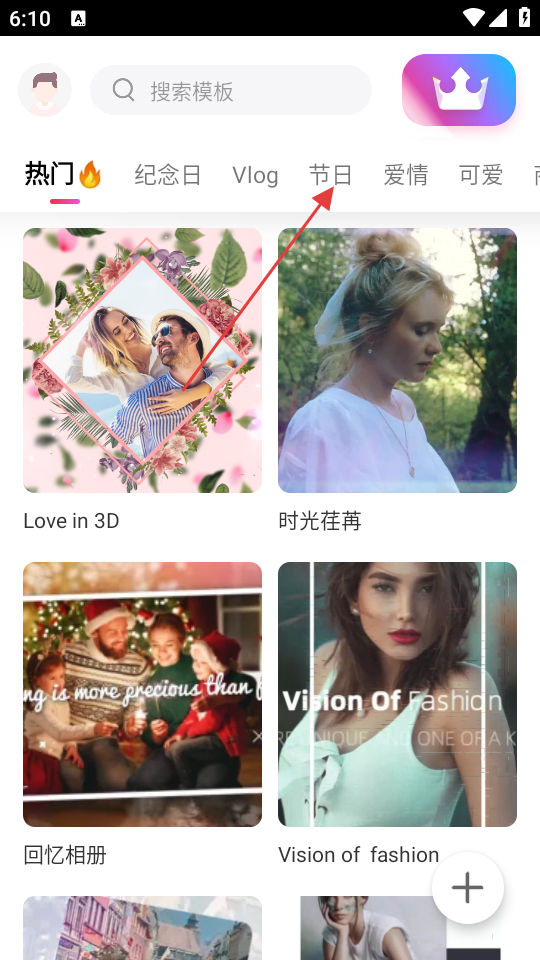 1、在首页,点击【节日】分类,可进入节日主题模板页面。