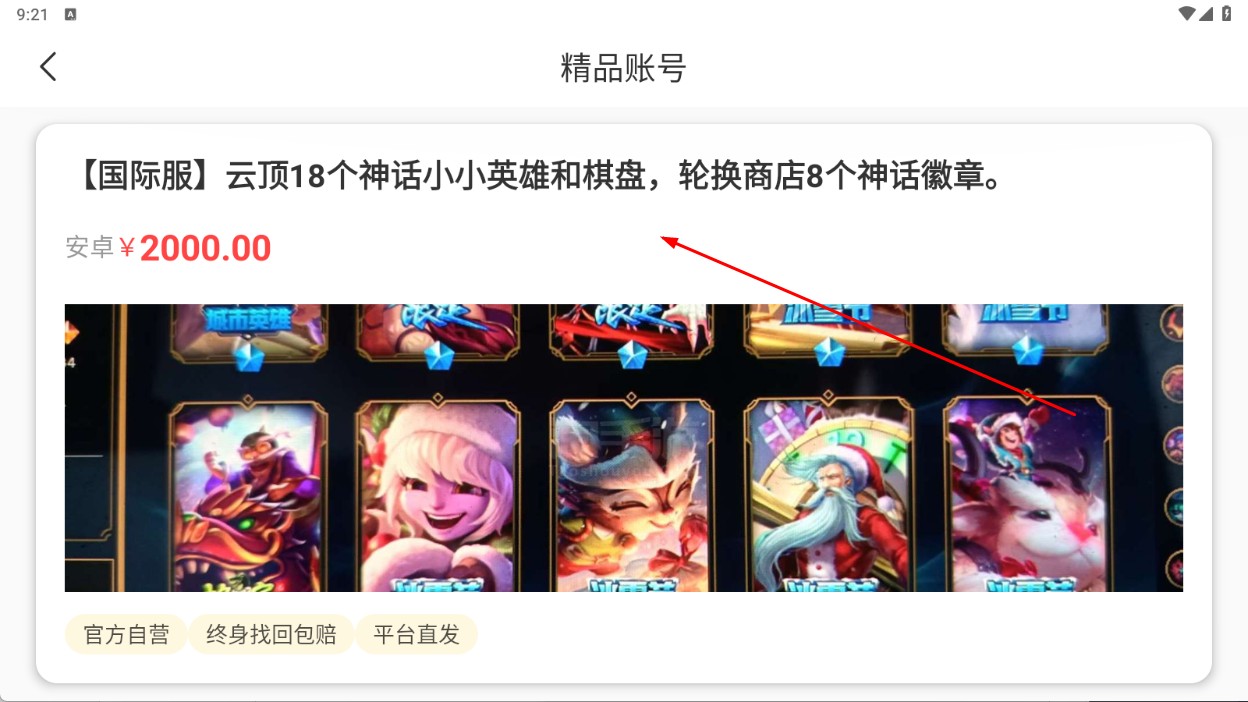 3、在精品账号列表,点击感兴趣的账号条目,查看账号信息。
