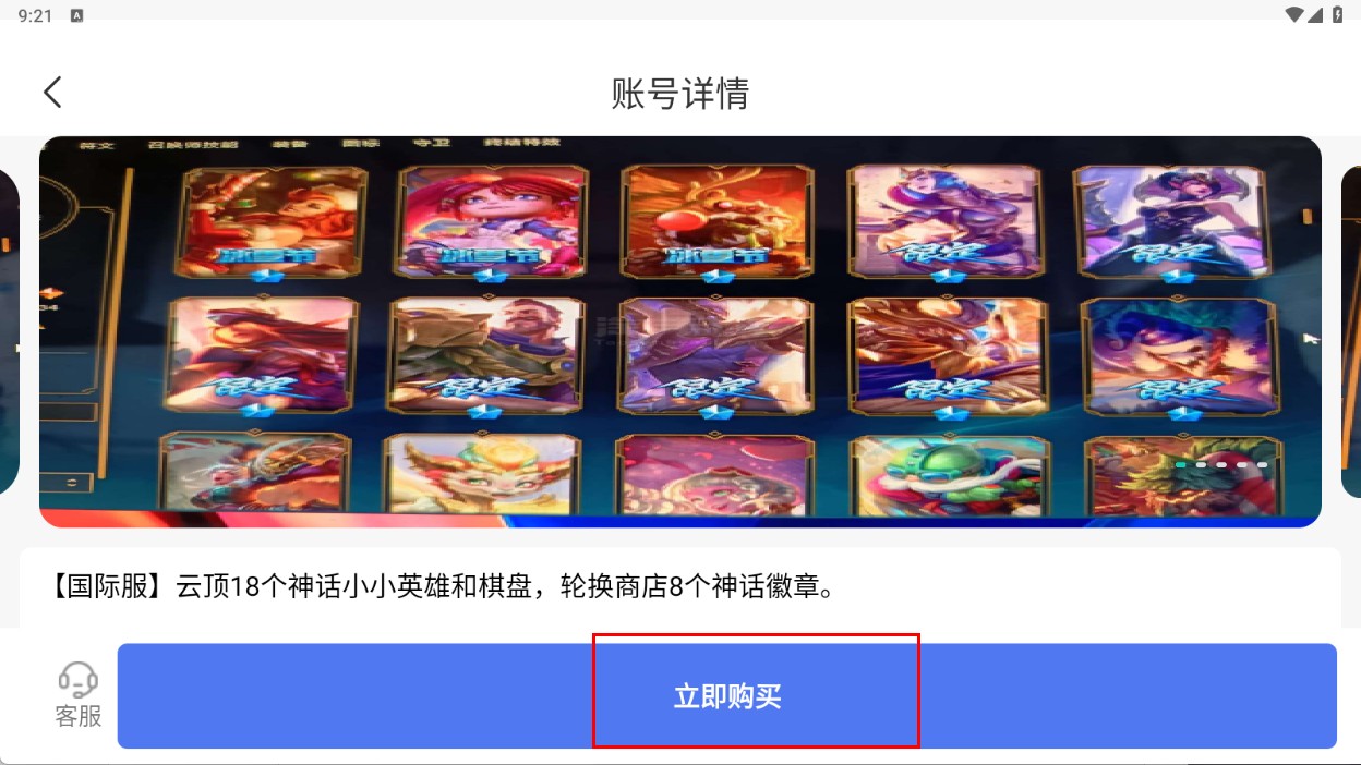 4、进入账号详情页后,点击【立即购买-功能按钮】,可购买该游戏账号。